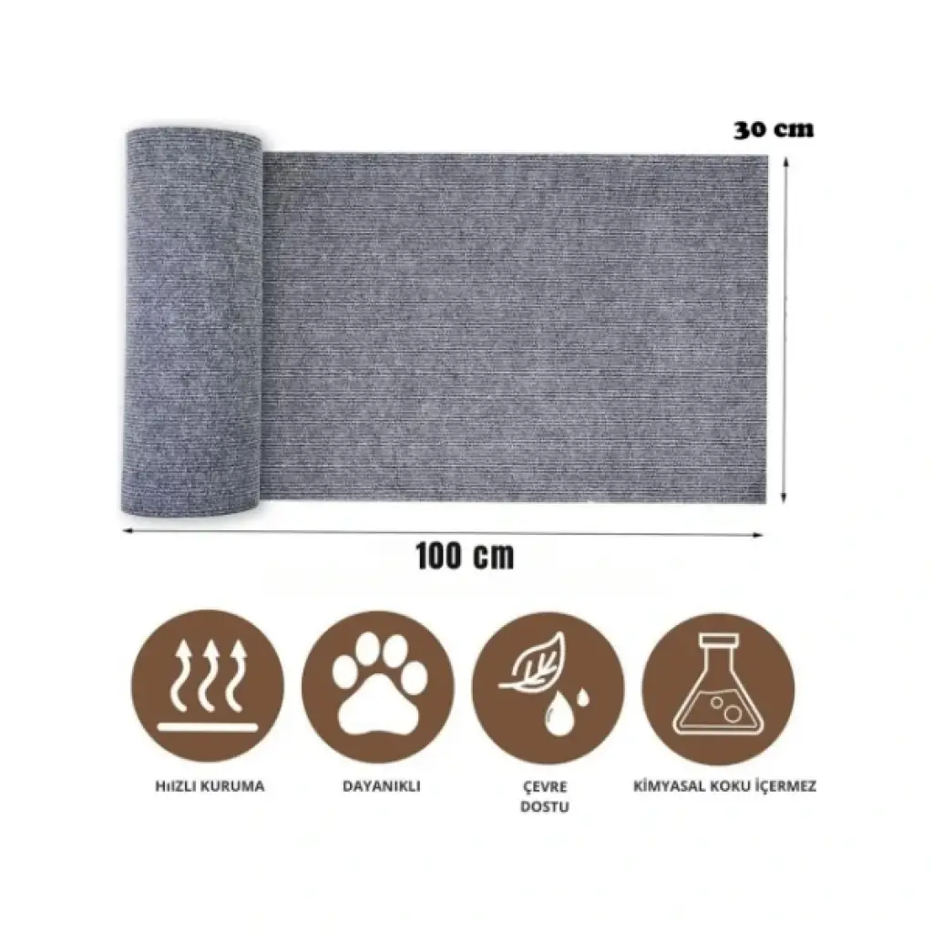 YAPIŞTIRILABİLİR KEDİ TIRMALAMA MATIÜrün ÖzellikleriYapıştırılabilir kediler için tırmalama matı, 100x30 cm boyutunda, dayanıklı ve çevre dostu bir materyalle üretilmiştir. Kedinizin tırmalama ihtiyacını karşılamak için mükemmel bir çözüm sunar. Hızlı kuruma özelliği sayesinde pratik kullanım sağlar. Kimyasal koku içermez, bu da kedinizin sağlığına zararlı olmayan güvenli bir ortam sağlar. Ürün, özellikle mobilyalarınızı korumak ve kedinizin tırmalama alışkanlıklarını yönlendirmek için idealdir.Paket İçeriği1 Adet Yapıştırılabilir Kedi Tırmalama Matı