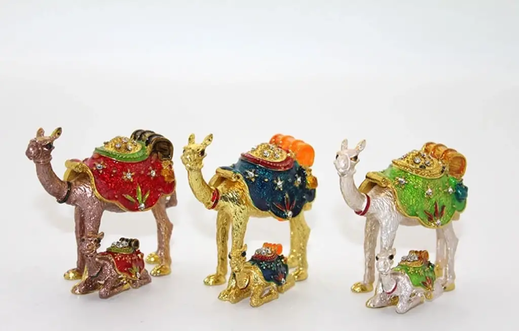 SWAROVSKİ YAVRULU DEVE MODEL 1Ürün Özellikleri Yavrulu Deve Model 1, özel tasarımı ve ince işçiliğiyle göz kamaştıran dekoratif bir aksesuardır. taşlarla süslenmiş bu koleksiyonluk obje, zarif detaylarıyla dikkat çeker. Metal gövdesi ve emaye kaplaması sayesinde uzun ömürlü ve dayanıklı bir yapıya sahiptir. Yavrulu deve figürü, otantik ve geleneksel bir hava katarken, ev ve ofis dekorasyonuna farklı bir dokunuş sağlar. Koleksiyoncular ve dekoratif aksesuar sevenler için ideal bir seçimdir.Not: Ürün farklı renklerde mevcuttur ve stok durumuna göre gönderilmektedir. Paket İçeriği1 Adet Yavrulu Deve