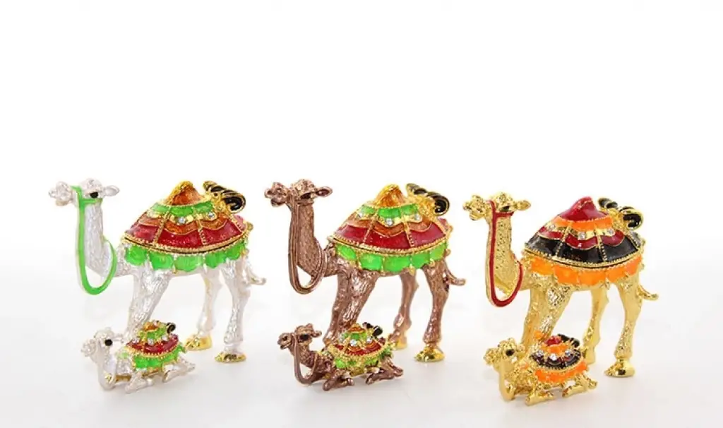 SWAROVSKİ YAVRULU DEVE MODEL 4Ürün Özellikleri Yavrulu Deve Model 4, zarif ve otantik tasarımıyla dikkat çeken koleksiyonluk bir dekoratif objedir. Metal gövdeye sahip olup, yüzeyinde parlak emaye kaplama ve özenle işlenmiş taşlarla süslenmiştir. Yavrulu deve figürü, şık detaylarıyla masa, vitrin veya raf dekorasyonları için ideal bir seçenektir. Hem otantik koleksiyon parçaları sevenler hem de özel ve anlamlı hediyeler arayanlar için mükemmel bir tercihtir.Paket İçeriği1 Adet Yavrulu Deve