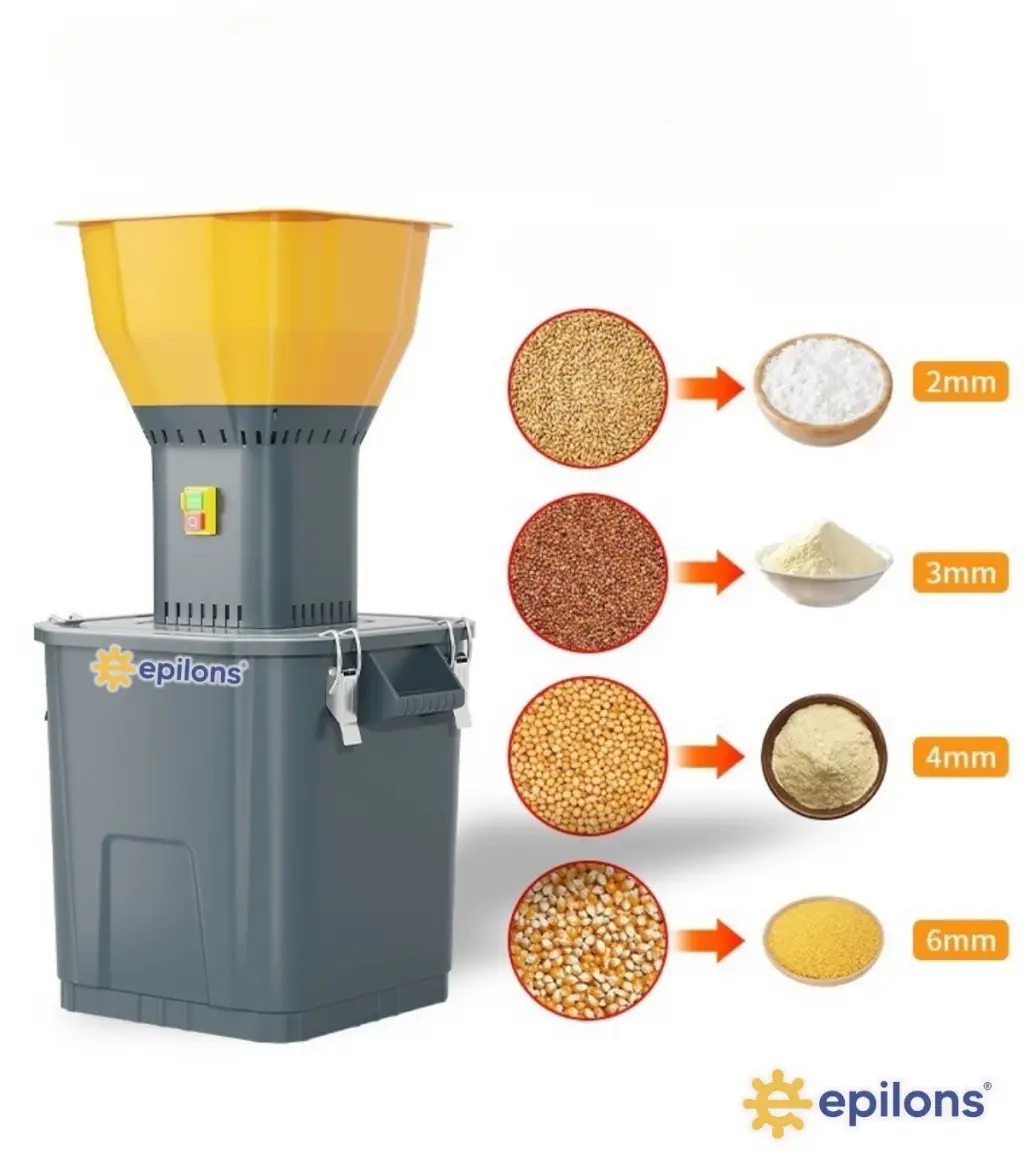 Yüksek kaliteli paslanmaz çelik malzemeden üretilmiş olan Epilons Tahıl Öğütücü Değirmen, uzun ömürlü kullanım sağlar ve hijyenik bir şekilde yemlerinizi öğütmenize olanak tanır.