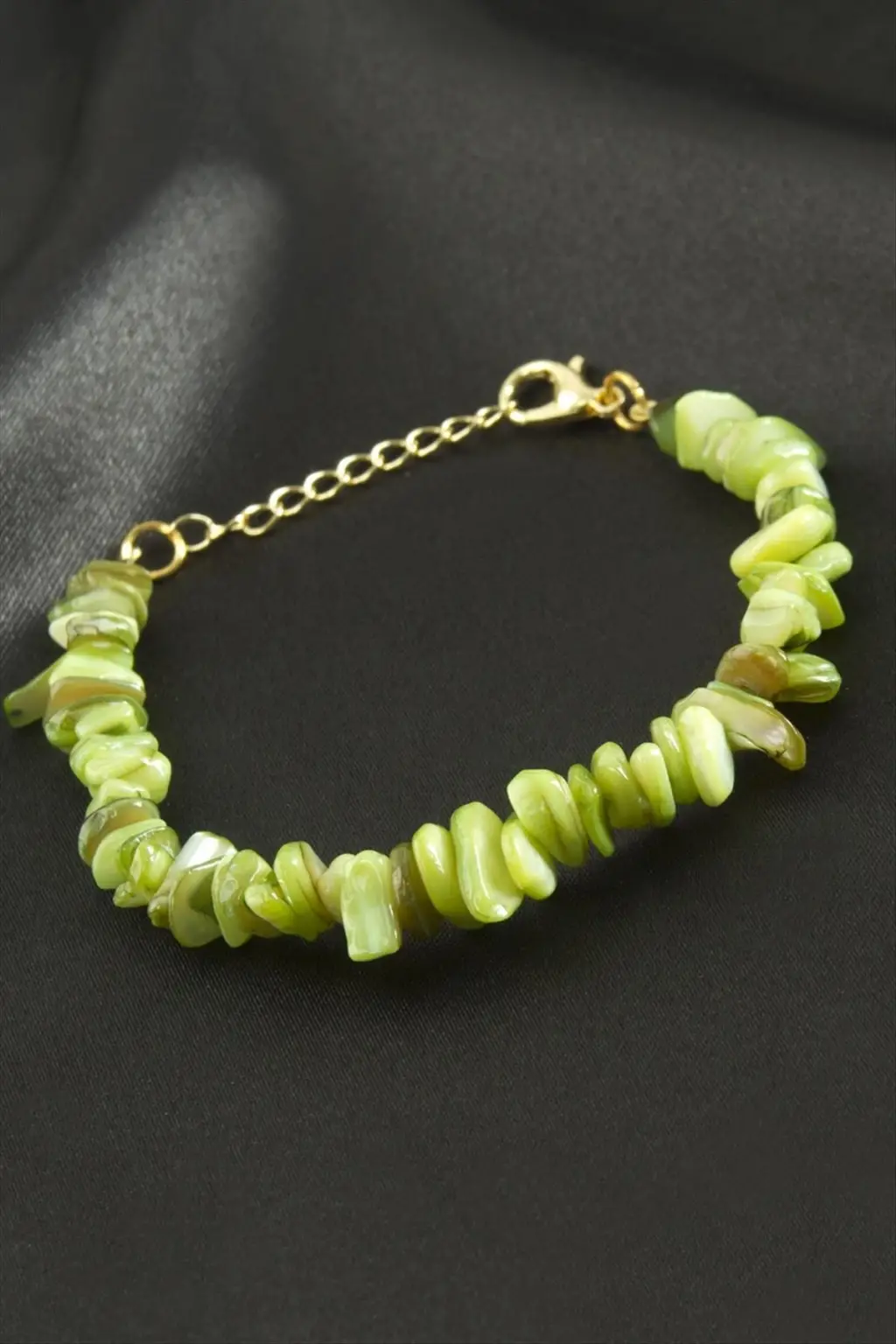 Bileklik; Ürün malzemesi kırık doğaltaş ve metaldir. Ürün boyu 19 cmdir. Kartlıdır. 1 sınıf kaliteli malzemeden üretilmiştir.