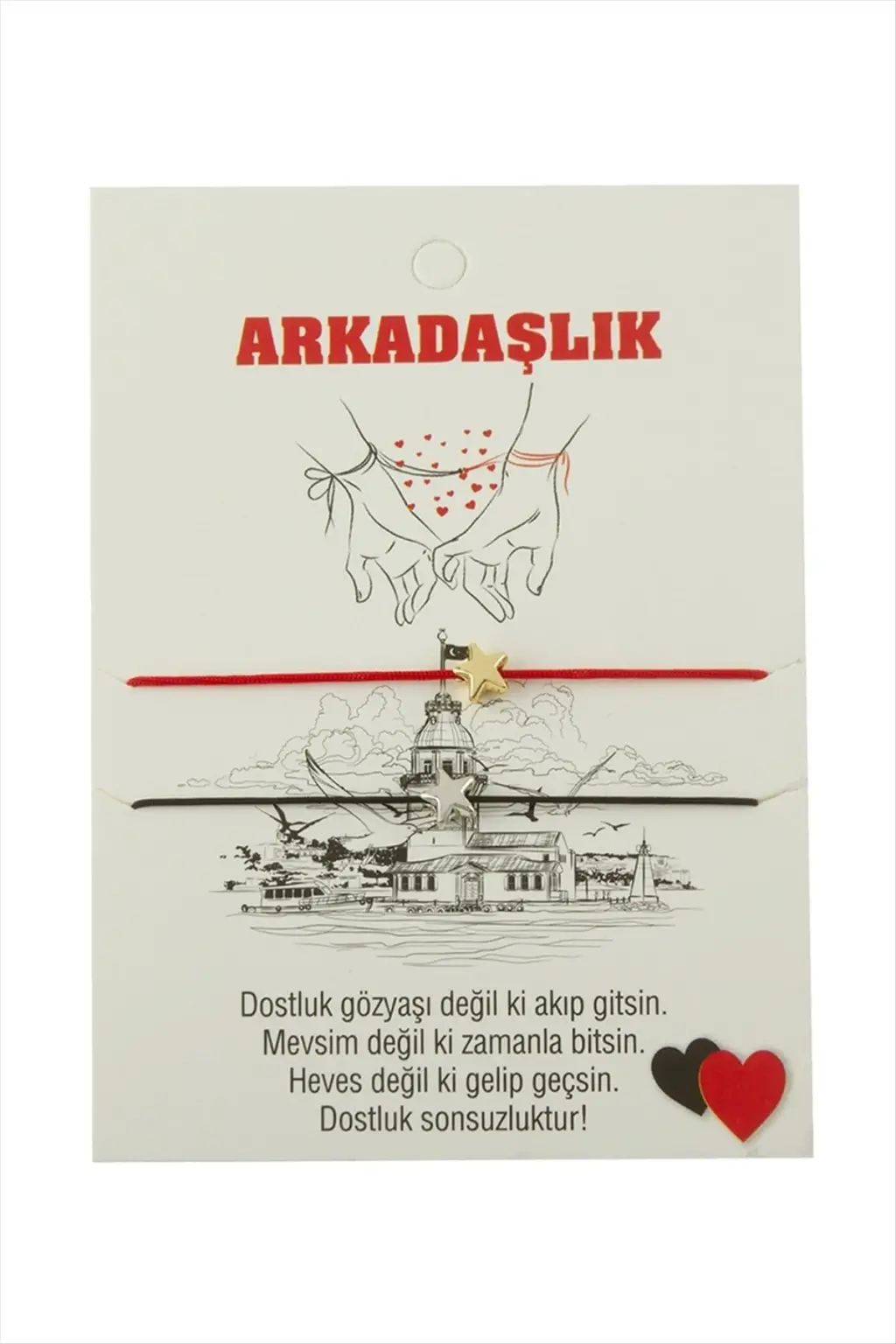 Bileklik; Ürün malzemesi metal ve iptir. Ürün kartlıdır. 1 kartta 2 adet olarak gönderilecektir. Bileğe göre ayarlanabilir.