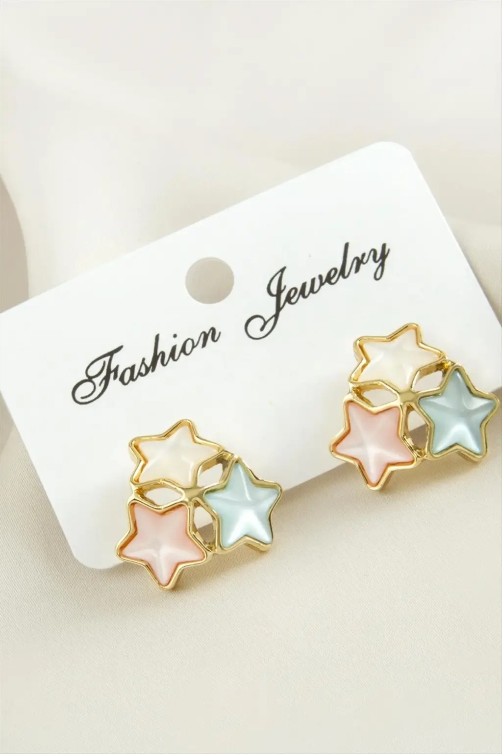 Küpe; Ürün malzemesi metal ve sedef taşlıdır. Ürün boyu 2,5 cmdir. 1 sınıf kaliteli malzemeden üretilmiştir. Kartlıdır.