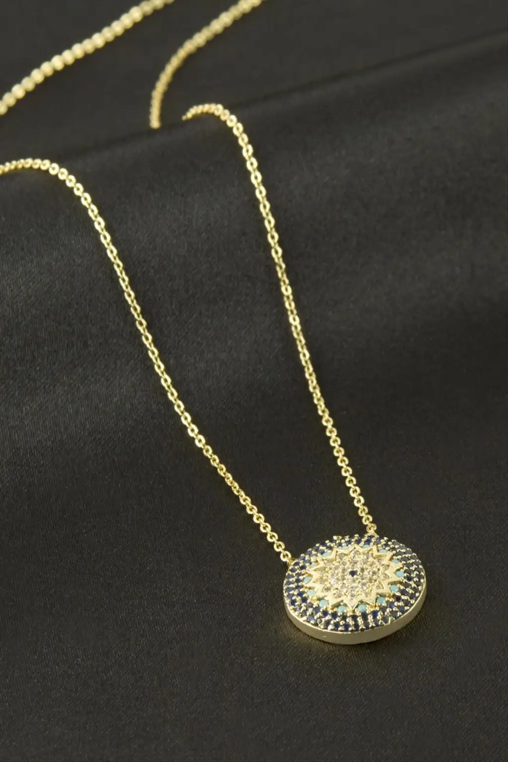 Kolye; Ürün malzemesi metal ve zirkon taşlıdır. Ürün boyu 45 cmdir. Kartlıdır. 1 sınıf kaliteli malzemeden üretilmiştir. Ürün ucundaki aparat boyu 1,8 cmdir.