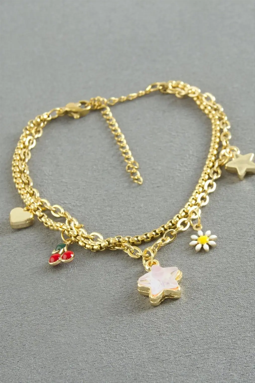 Bileklik; Ürün malzemesi mine boyama ve çeliktir. Bileklik boyu 19 cmdir. Kartlıdır. 1 sınıf kaliteli malzemeden üretilmiştir.