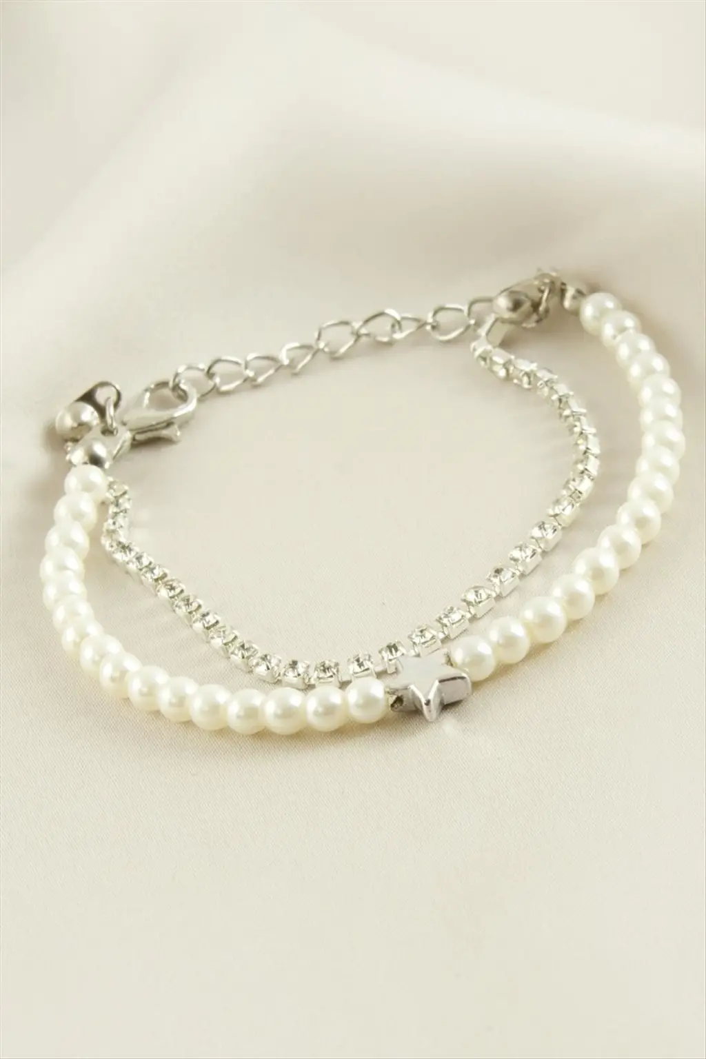 Bileklik; Ürün malzemesi metal, taş ve incidir. Ürün byu 19 cmdir. Kartlı ve paketlidir.
