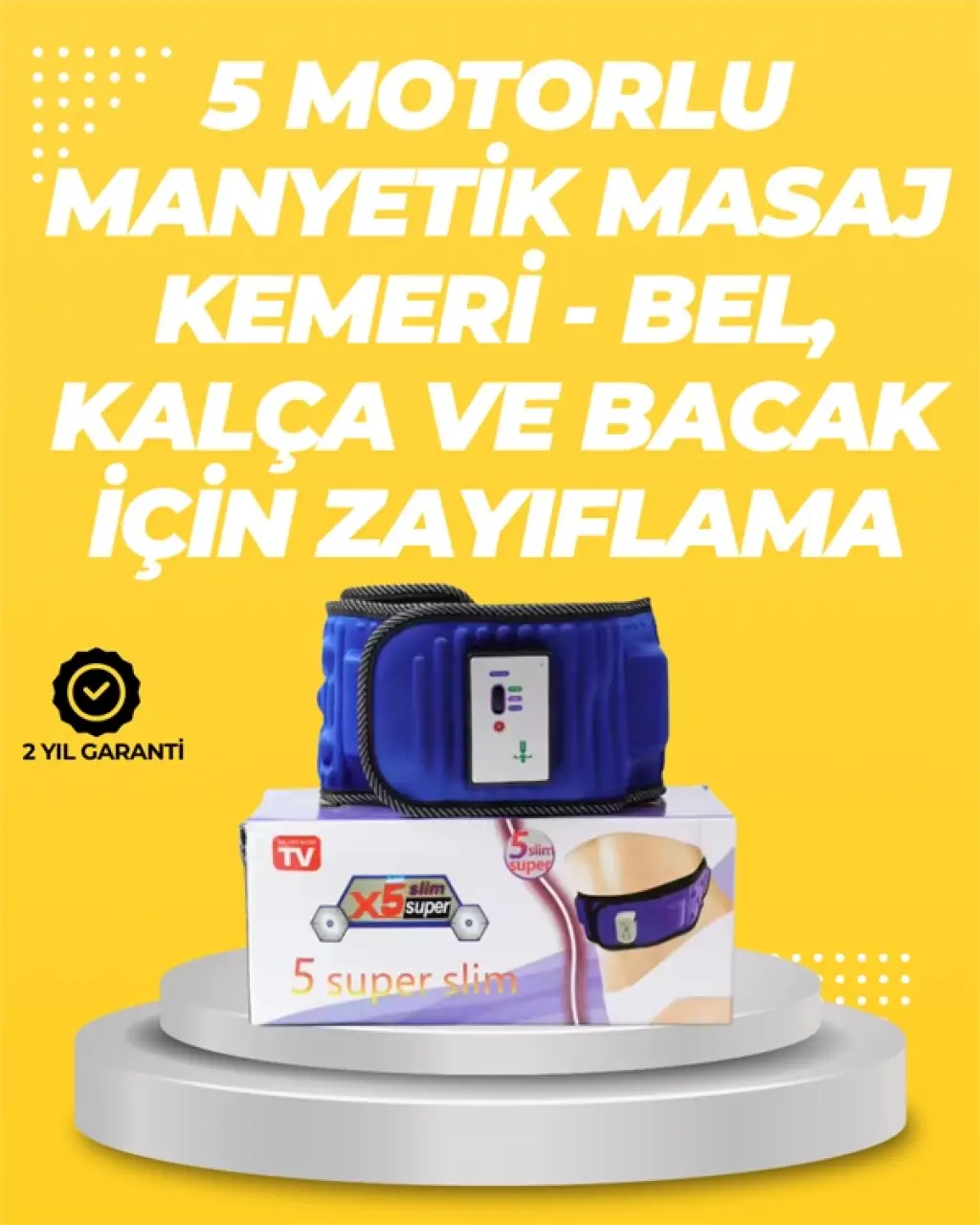 Bu çok işlevli masaj kemeri; zayıflamak isteyenler, gün içinde kaslarını rahatlatmak isteyenler ya da yorgunluğunu azaltmak isteyenler için tasarlanmış profesyonel bir çözümdür. Vücut hatlarını şekillendirmeye yardımcı olan bu cihaz, 5 farklı güçlü titreşim motoru ve dahili 20 adet mıknatıs ile çalışır. Mıknatıslar, vücutta mikro dolaşımı hızlandırarak yağ yakım sürecine destek olurken, titreşim motorları sayesinde derin doku masajı etkisi yaratır.Kemerin boyutu 128 x 13 cm olup, bel, kalça, bacak, kol, baldır gibi çok çeşitli bölgelerde kullanılabilir. Kullanıcı dostu yapısı sayesinde kolayca takılır ve vücuda tam oturur. Ayarlanabilir hız modları sayesinde kullanıcılar kendi konfor düzeylerine göre yoğunluk ayarı yapabilir. 7.2W güç kapasitesi ile çalışan cihaz, 100-240V geniş voltaj aralığı sayesinde farklı ülkelerde de rahatça kullanılabilir.Çıkış voltajı 12V / 1000mA olan cihazın elektriği depolayabilme özelliği sayesinde şarj edildikten sonra kısa süreli kablosuz da kullanılabilir. Yalnızca 750 gram ağırlığında olması, hem kullanım hem taşıma kolaylığı sağlar. Kutu içinde güvenli taşıma ve muhafaza için özel bölmeli ambalaj da yer almaktadır. Günlük kullanımda sadece 15 dakikalık seanslarla kas gevşetici, selülit azaltıcı ve form koruyucu bir etki yaratır.