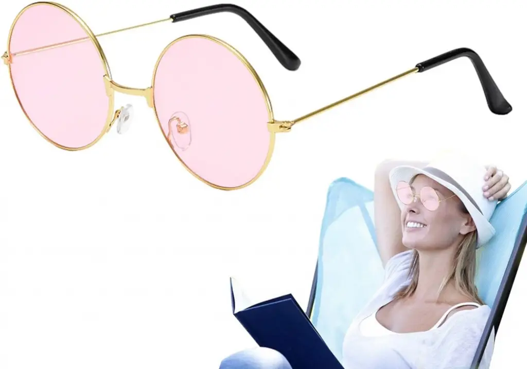 Yuvarlak Cam John Lennon Tarzı Hippi Gold Çerçeveli Pembe Gözlük: Güneşli Günlerin İkonik Yıldızı