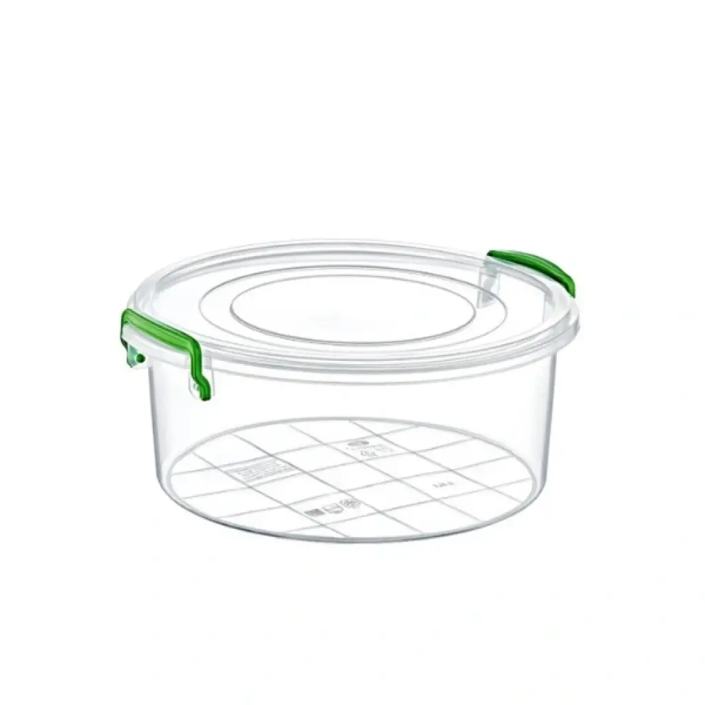 YUVARLAK SAKLAMA KUTUSU 2.4 LİTREÜrün ÖzellikleriŞeffaf tasarımı ve pratik kullanım kolaylığı ile öne çıkan Yuvarlak Saklama Kutusu 2.4 Litre, mutfakta hem düzeni korur hem de gıdalarınızı uzun süre taze tutar. 9x22,5 cm boyutundaki geniş hacmi sayesinde kuru gıdalardan atıştırmalıklara kadar pek çok ürünü rahatça muhafaza etmenizi sağlar.Dayanıklı, BPA içermeyen plastikten üretilen bu saklama kabı, gıda temasına uygundur ve sağlığınızı korur. Yeşil klipsli kapağı, hava ve sıvı geçirmez özelliğiyle yiyeceklerin tazeliğini maksimum seviyede tutar. Şeffaf gövde yapısı sayesinde içerideki ürünü kolayca görebilir, kullanım kolaylığı elde edebilirsiniz.Yuvarlak formu sayesinde buzdolabı, mutfak dolabı veya tezgâh üzerinde düzenli bir görünüm sağlar. Hafif yapısı ile taşınabilir ve kolay temizlenebilir. Ev, ofis veya piknik gibi her ortamda kullanıma uygundur.Paket İçeriği1 adet 2.4 litrelik yuvarlak saklama kutusu