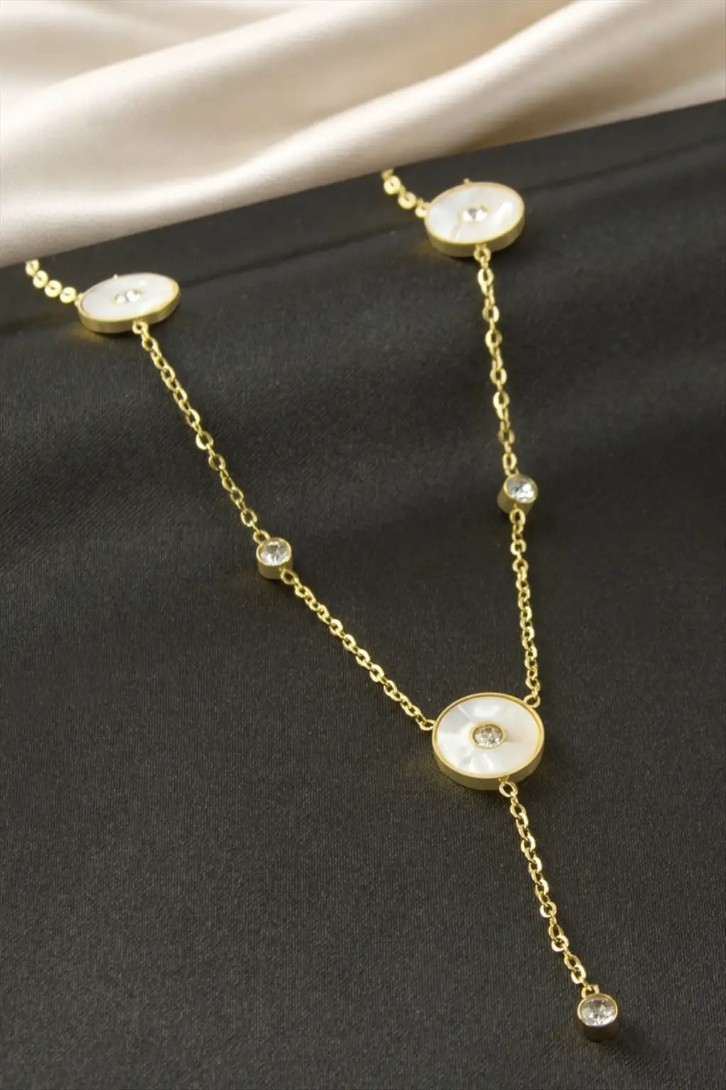 Kolye; Ürün malzemesi sedef ve çeliktir. Zincir uzunluğu 45 cm ve ucundaki aparat boyu 1 cmdir. Kartlıdır. Kararma yapmaz.