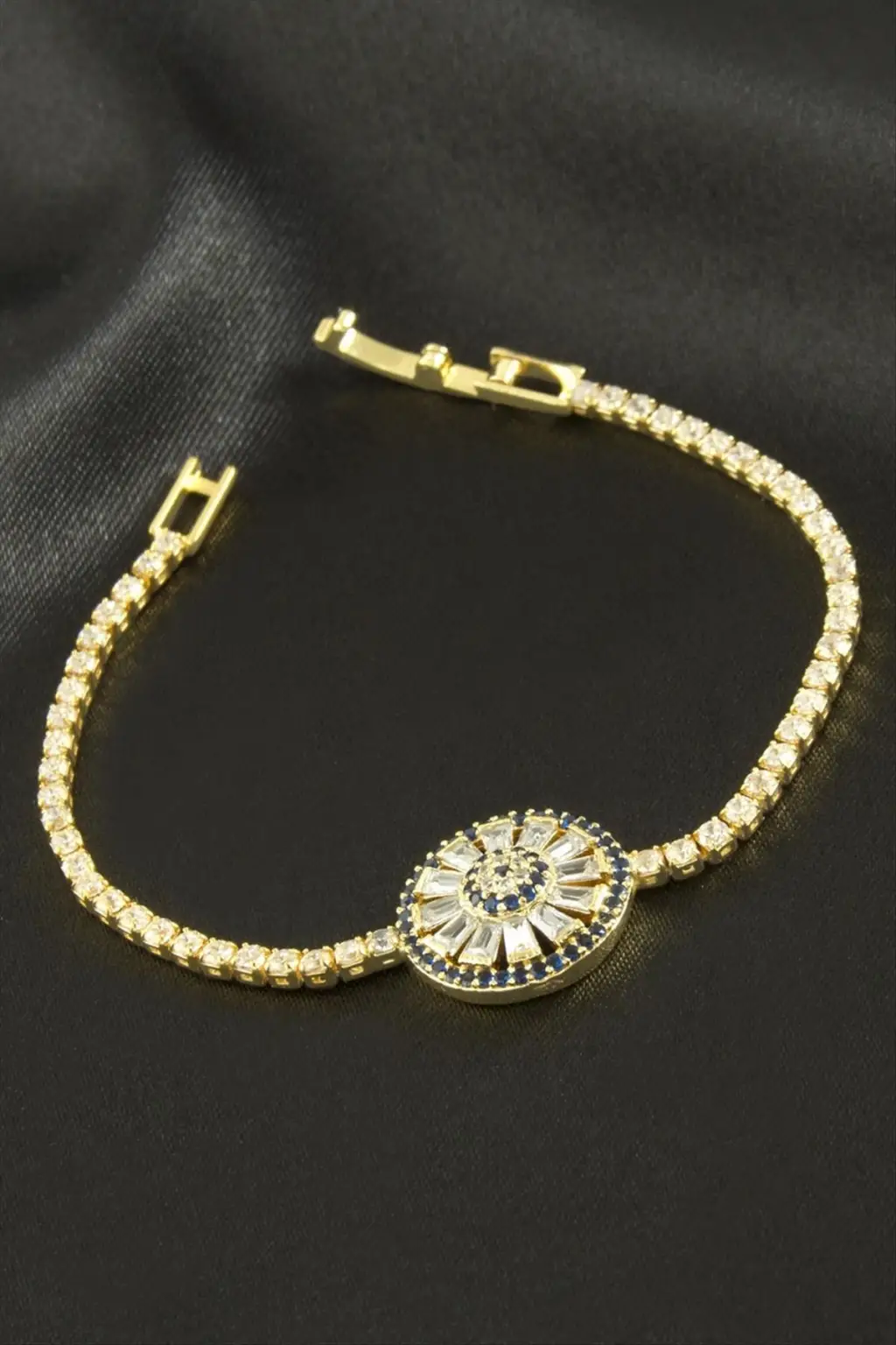 Bileklik; Ürün malzemesi metal ve zirkon taşlıdır. 1 sınıf kaliteli malzemeden üretilmiştir. Bileklik boyu 16 cmdir. Kilitlidir.